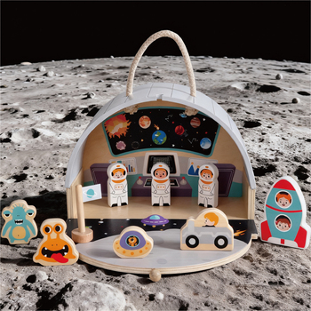 Estuche de transporte de juguete espacial de madera Montessori para niños, juego de juguetes de escena de juego de rol